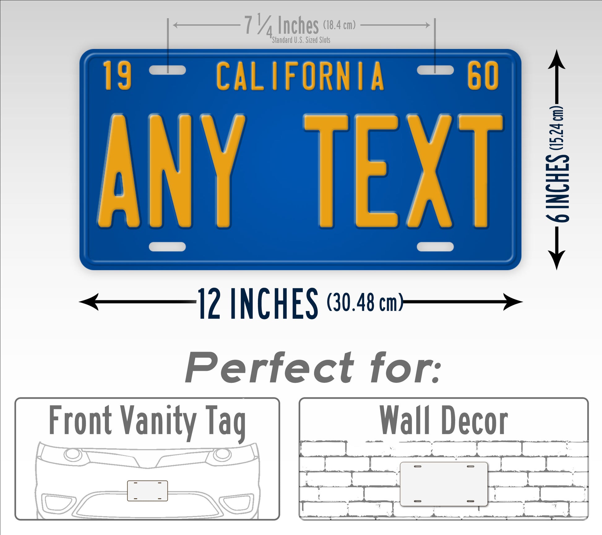 Personalized California 1950s 1960s 1970s Replica CA License Plate