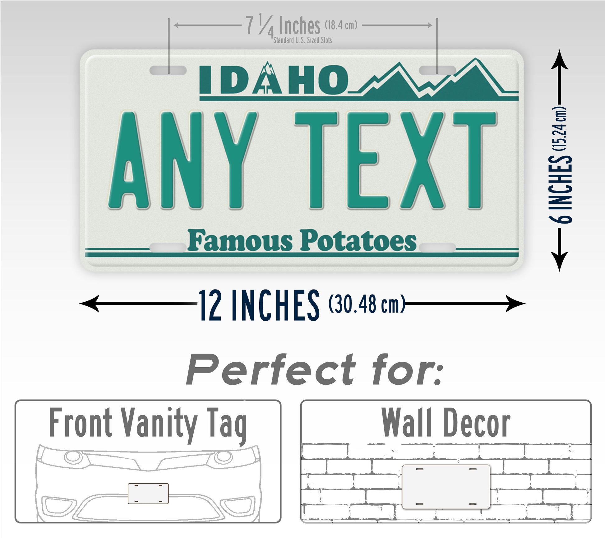This license plate is a replica of Idaho's official tag that was issued from 1987 to 1989. Features a white plate with aqua lettering and the mountains of Idaho in the top right hand corner. The text can be personalized to whatever you want. A great license plate for anyone collecting Idaho plates or for your vintage car or truck!