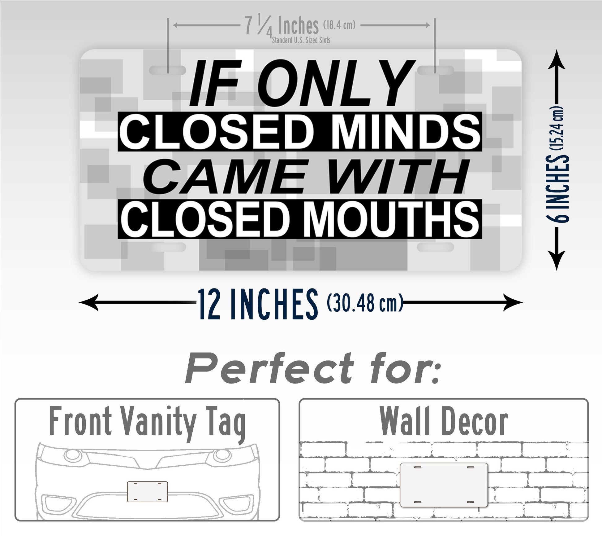 Do you ever wish that some people would shut up? Especially people who aren't reasonable? If so, you might need this slightly sarcastic license plate! It features the text, "If Only Closed Minds Came With Closed Mouths" set overtop a silver/ grey background.