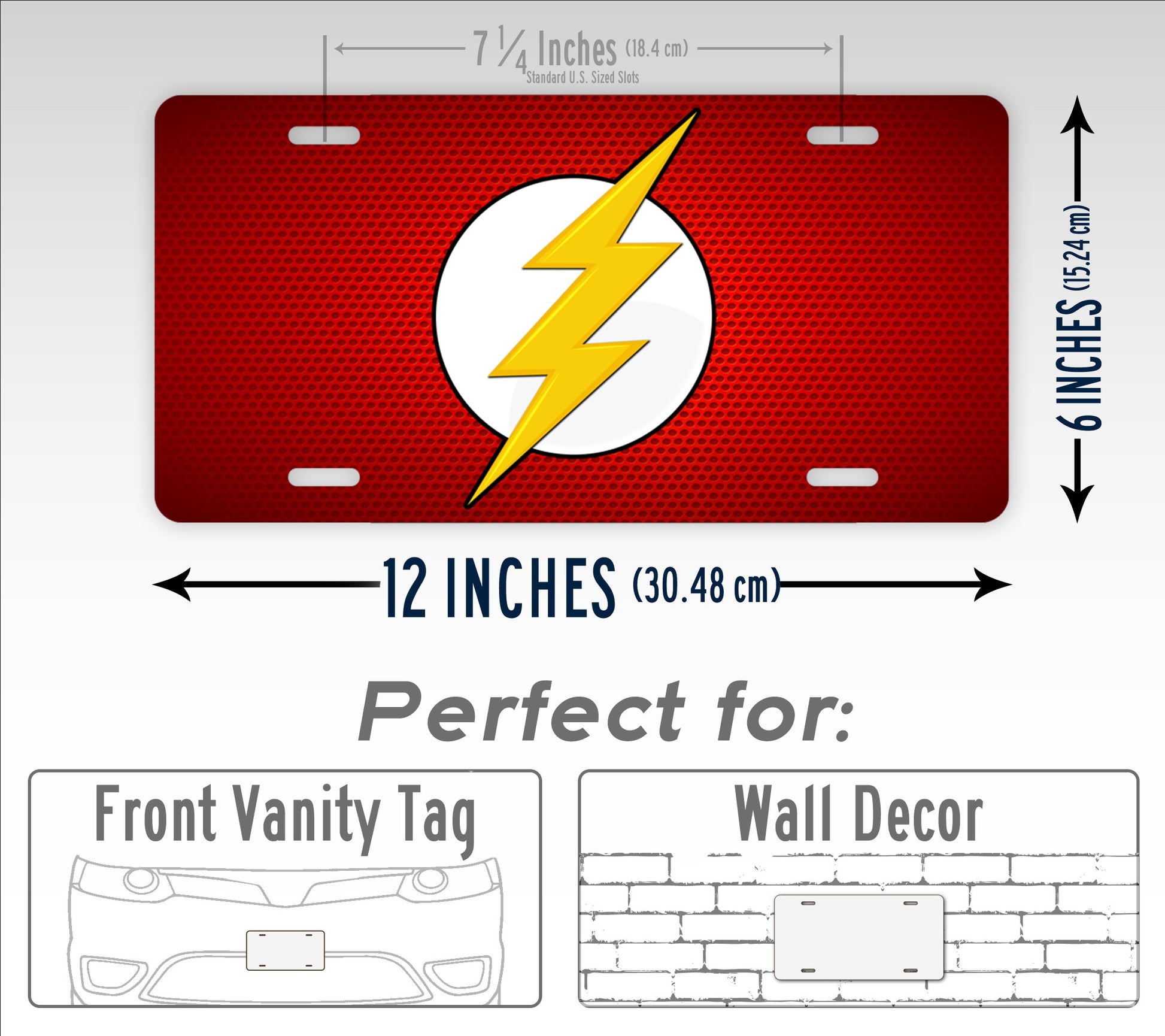 This license plate is reminiscent of the comic book series "The Flash." This comic book series started in 1959 and has been stopped and restarted multiple times continuing right up to the present. This is sure to be a hit for any "Flash" comic book fans!
