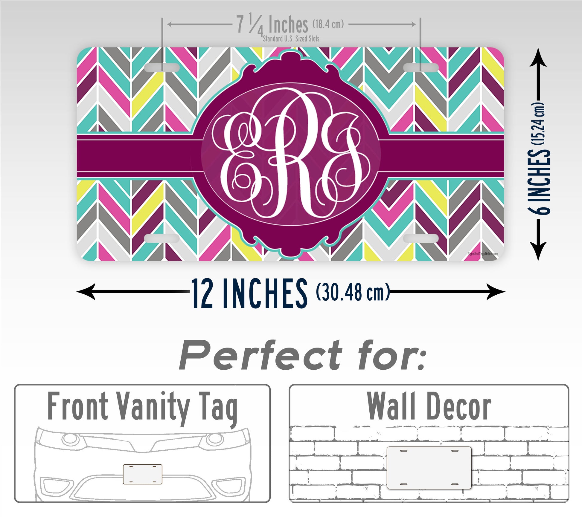 Plate dimensions are standard for U.S. plates (6" x 12"). Unless otherwise noted, all license plates are not embossed but are flat metal.