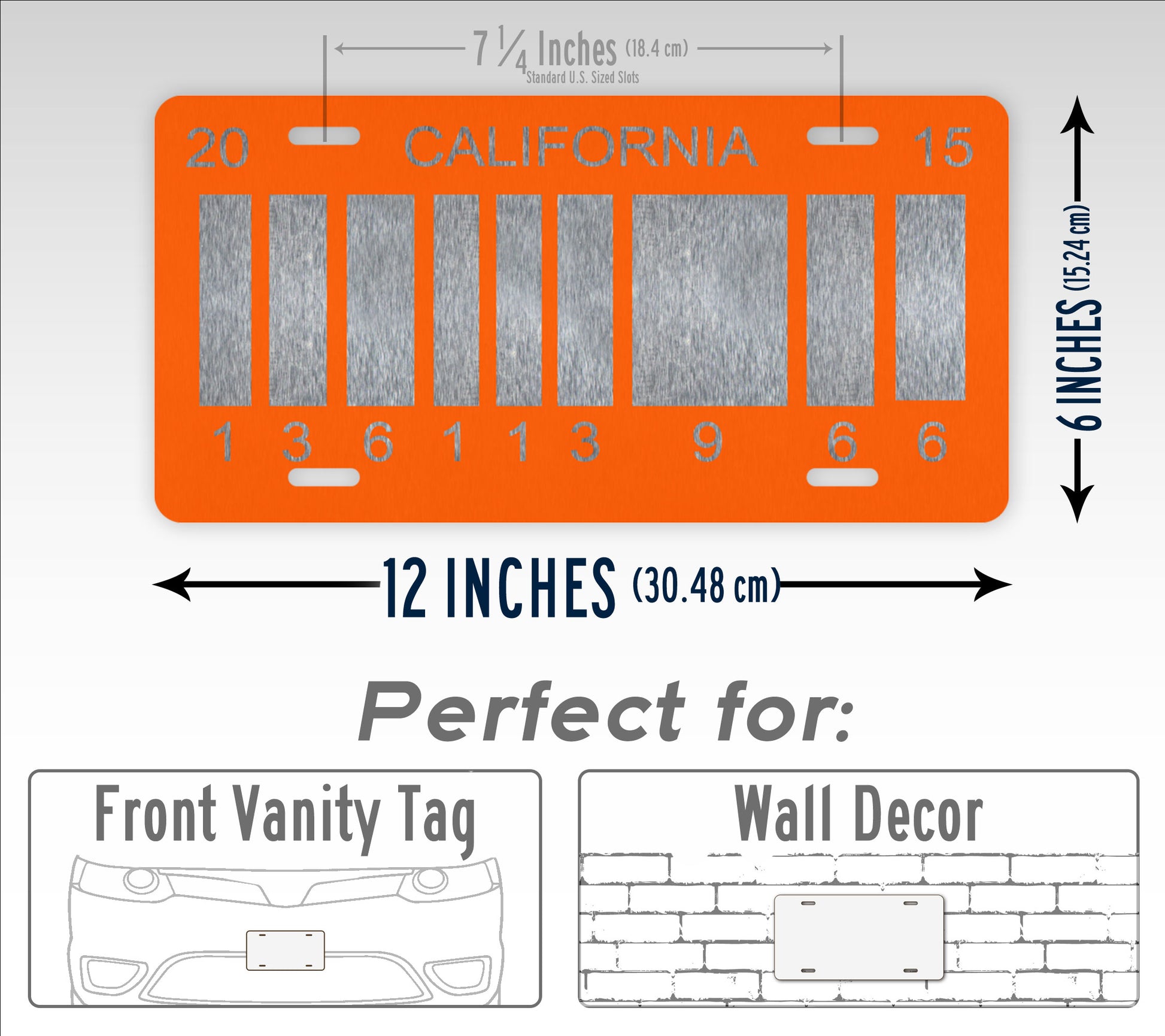 22 Gauge high-quality aluminum will never rust! (20 gauge available). Our novelty replica plates are not intended to replace state issued plates.