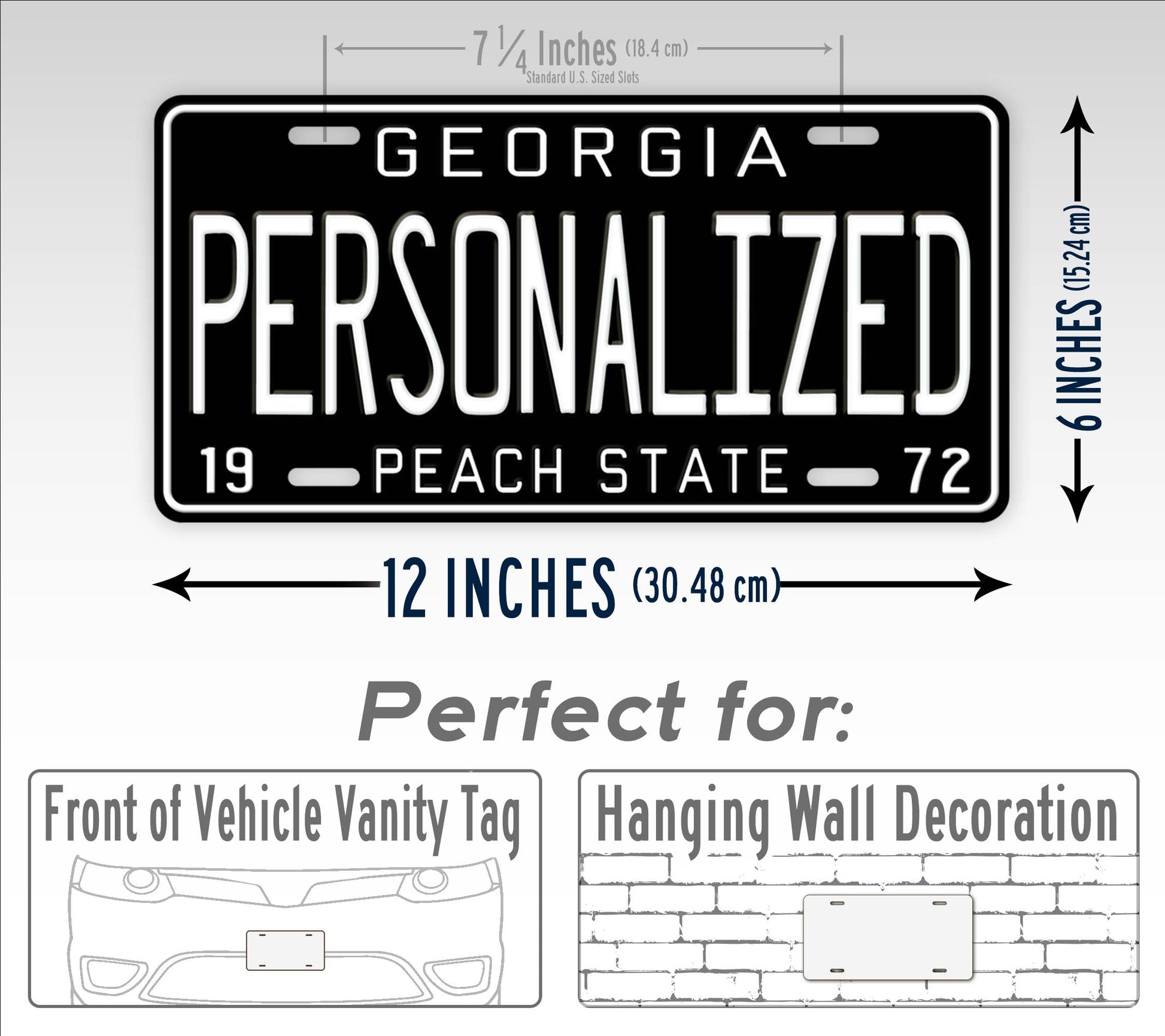 This is a replica of the Georgia state license plate that was issued in 1970. Done in a "blackout" version with white text and a solid black background. Blackout styled plates have become very popular recently and many customers are opting for these high contrast auto tags. Customize this license plate with a main text, as well as a custom 4 digit year. Note, the 4 digit year is split with 2 digits on the left bottom of the plate and 2 digits on the right bottom of the plate. Optionally, you can leave the "date" area blank and we will omit any numbers in the "date" areas of the finished plate.