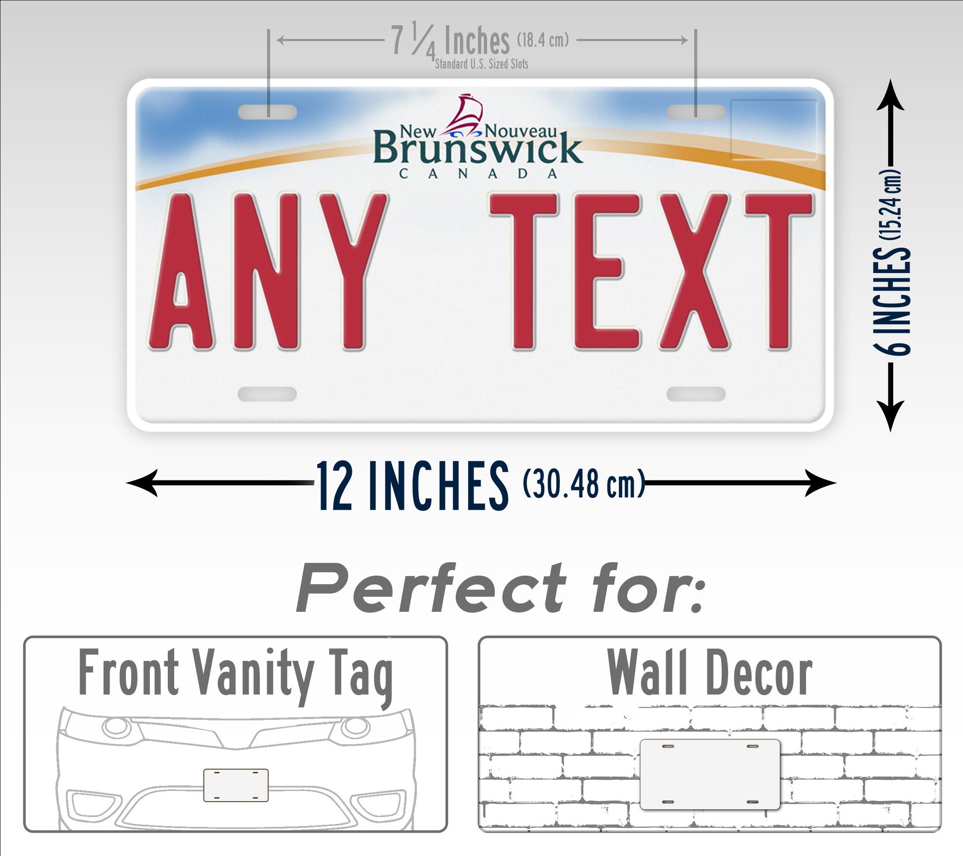 This is a replica of New Brunswick Canada's license plate that has been their standard-issue since 2011. Personalize this novelty Canadian license plate with your own custom text.