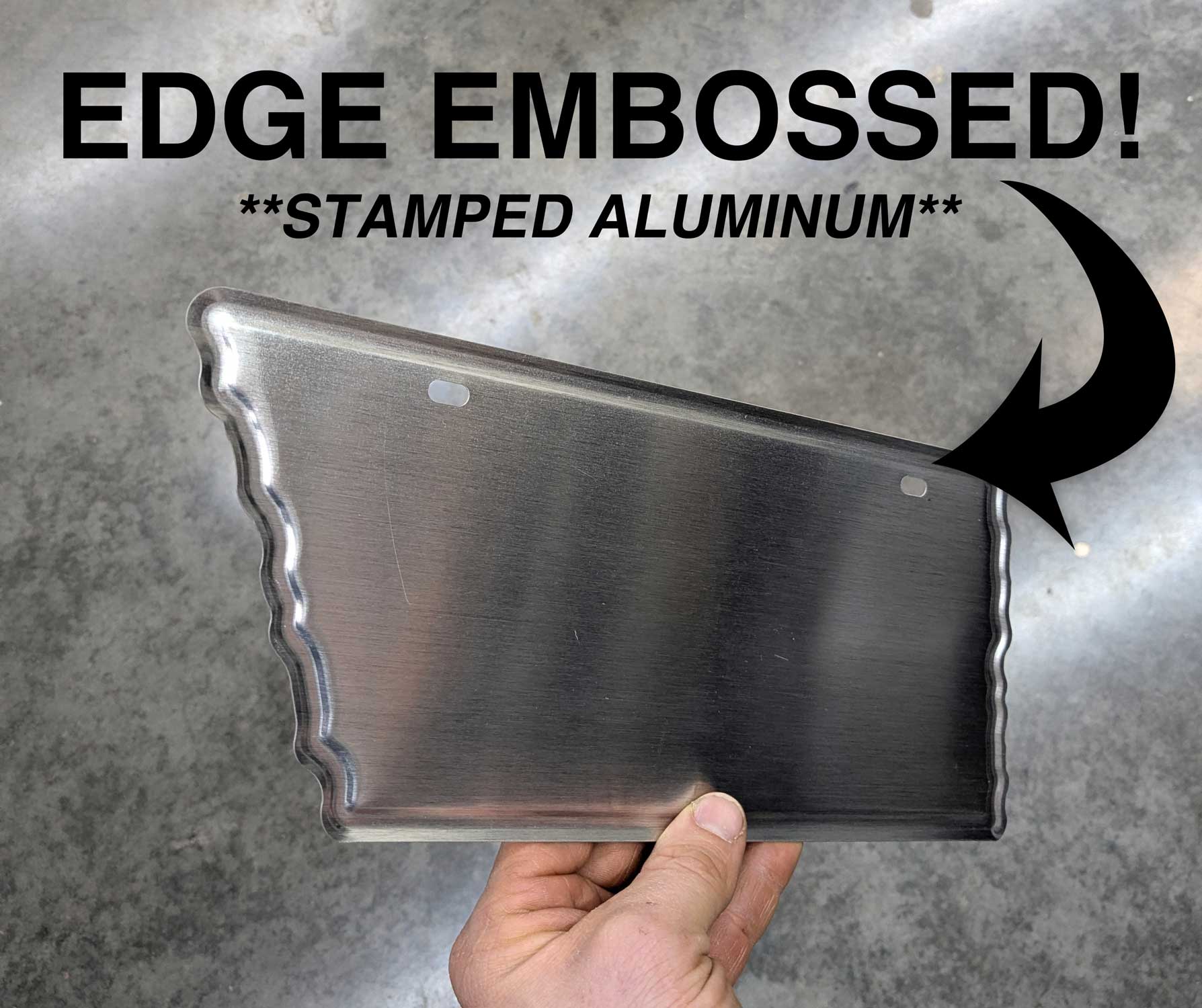 22 Gauge high-quality aluminum will never rust! (20 gauge available). Our novelty replica plates are not intended to replace state issued plates.